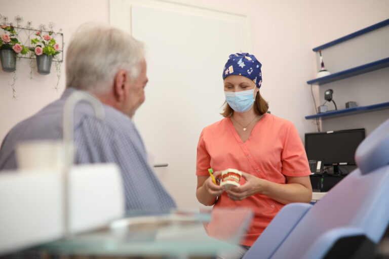 Wir empfehlen, dass Patient:innen nach der Behandlung nichts essen, so lange die Betäubung noch wirkt.