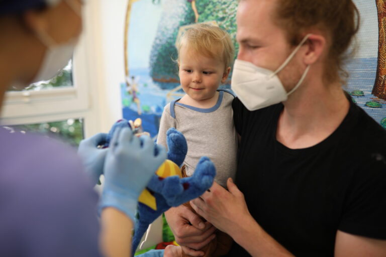 Für Kinder bereiten wir die Betäubung mit einer Geschichte so vor, dass sie diese leichter akzeptieren können. Wir empfehlen, mit Ihrem Kind über die Betäubung als einen “Schlafsaft” zu sprechen, um es besser zu verstehen.